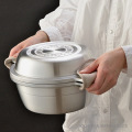 マイスター あわせ釜の本体は熱伝導に優れたアルミキャスト(鋳物)製で密閉性が高く、ほどよく重みのある蓋が、ウォーターシール効果で鍋をしっかり密封。