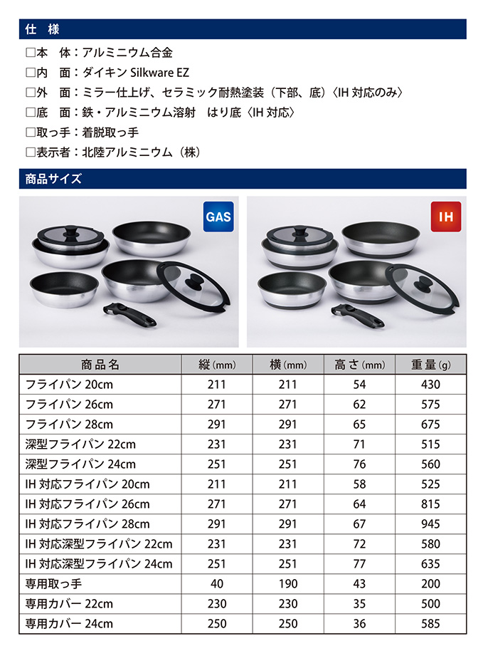 今回の製品の特長の一つは、北陸アルミニウムが初めて発表する「着脱式取っ手」を備えたフライパンであるということです。
